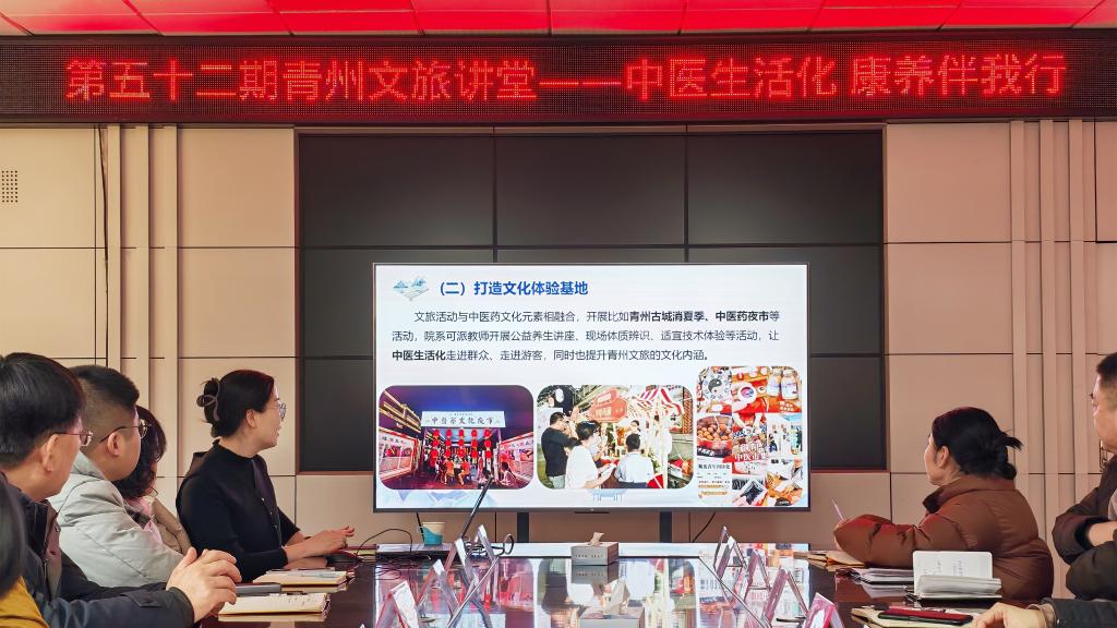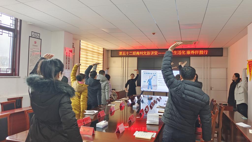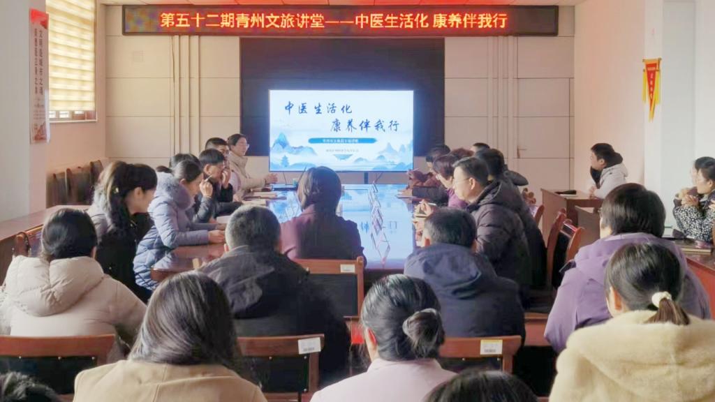 2026年2月6日下午,中医系应邀前往青州市文旅局,成功举办了一场以“中医生活化,康养伴我行”为主题的青州文旅讲堂。此次活动是我校推动“中医生活化”理念落地的一次重要实践,旨在将中医养生智慧融入日常生活与文旅场景。市文旅局全体职工共同参与了本次活动。