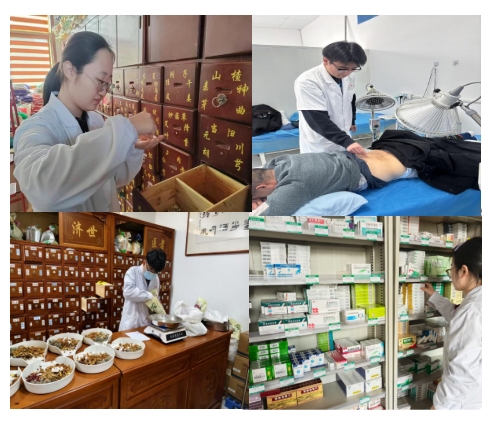 图为“杏林萌新”职业认知实践活动:志愿者在家乡中医相关机构跟岗学习,调研中医生活化服务流程,形成职业规划建议。