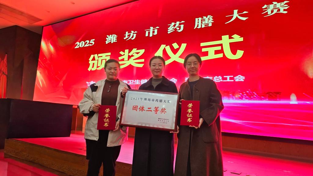 10月31日,由潍坊市卫生健康委员会、潍坊市总工会联合主办的2025潍坊市药膳大赛圆满落幕。本次大赛汇聚全市18支实力强劲的代表队,共54名选手同台竞技,参赛选手均来自全市各区(县、市)医药单位的权威中医药膳专家,他们带着深厚的药膳理论积淀与丰富的临床实践经验同台竞技,以专业水准展开激烈比拼,充分彰显了潍坊中医药膳领域的高水平专业实力。其中,潍坊护理职业学院中医系选派的张倩、赵晓君、张玉晗三位教师组成的参赛队伍,在此次竞赛中凭借扎实的专业功底脱颖而出,最终喜获团体二等奖。其中赵晓君、张玉晗两位教师斩获个人二等奖。